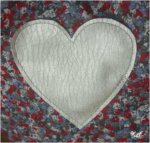 - Dessiner à main lever une étoile et un cœur (ou autre) sur du tissu enduit et découper les deux empiècements
